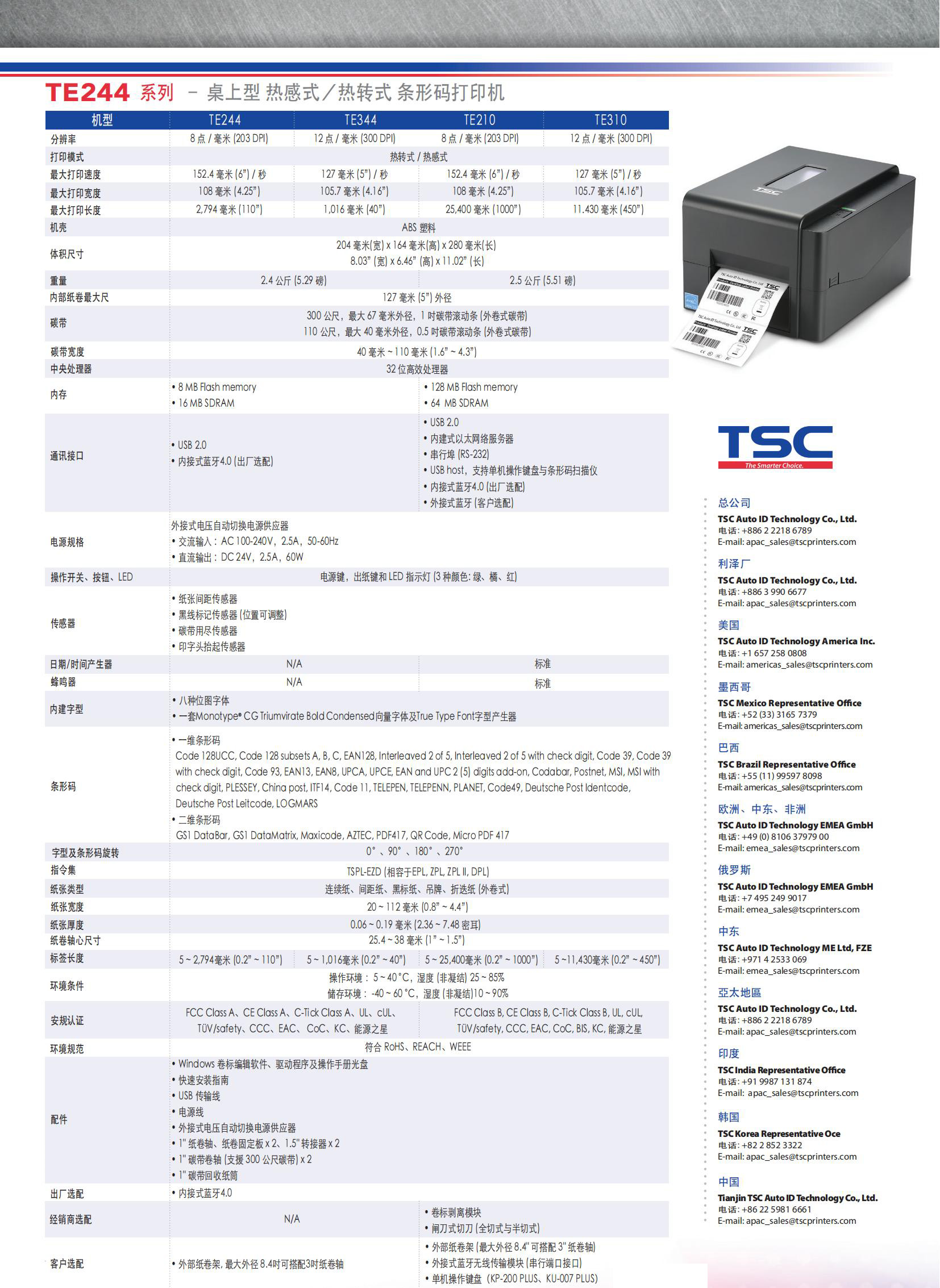 TSC--TE244 系列– 桌上型 热感式/热转式 条形码打印机